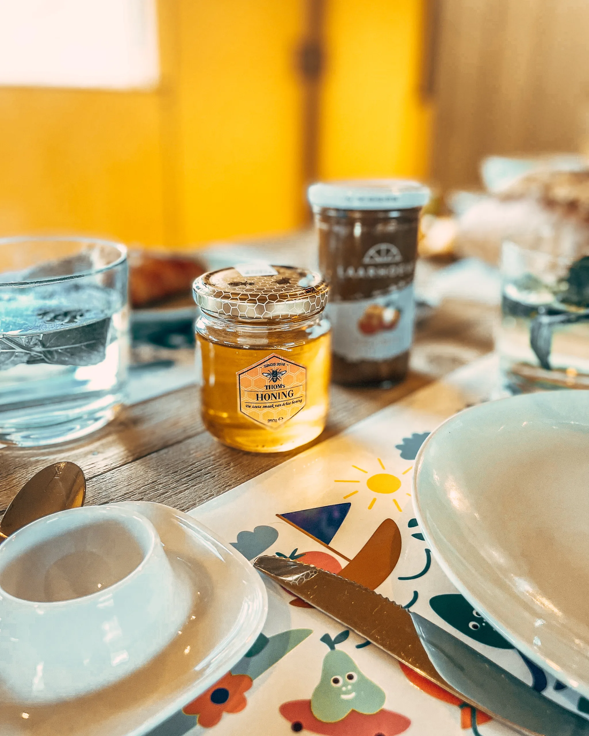 Wat deze lekkernijen bijzonder maakt, zijn de mensen erachter. Zo komt het bier van brouwerij De Boslust in Alphen en van ons neefje met zijn bier van Sas. De wijnen zijn van Hof van Baarle, een wijngaard van een vriendin van Marieke waar je ook zelf kunt proeven op het terras tussen de druivenranken, mét mini-speeltuintje voor de kinderen. De honing is afkomstig van Thom, wiens bijen achter onze glamping staan, en de jam wordt gemaakt bij de Laarhoeve in Diessen.